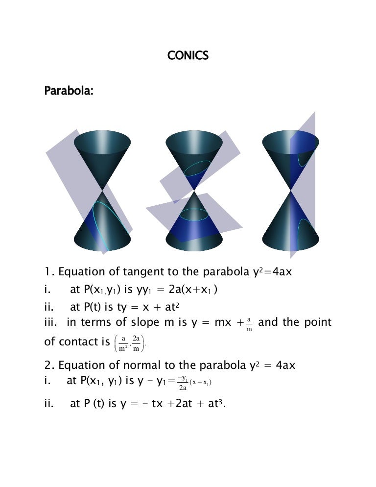 In mathematics, a conic section (or just conic) is a curve that can be formed by intersecting a cone (more precisely, a right circular conical surface) with a plane. But it can, at least, be enjoyable. The conic sections are the parabola, circle, ellipse, and hyperbola. The equation of any conic section can be written as. The parabola is another commonly known conic section. In today's conic section session, you will learn all about iit jee mains & advanced topic conic sections parabola by maths. As we saw in quadratic functions , a parabola is the graph of a quadratic function. A summary of part x (conicsections) in 's conic sections. Yes, conic sections isn't particularly exciting. 698 (3 0) chapter 3 nonlinear sstems and the conic sections 49. Step 1 is admitting we have a problem. Our old friend the parabola! Find the standard form of the parabola.